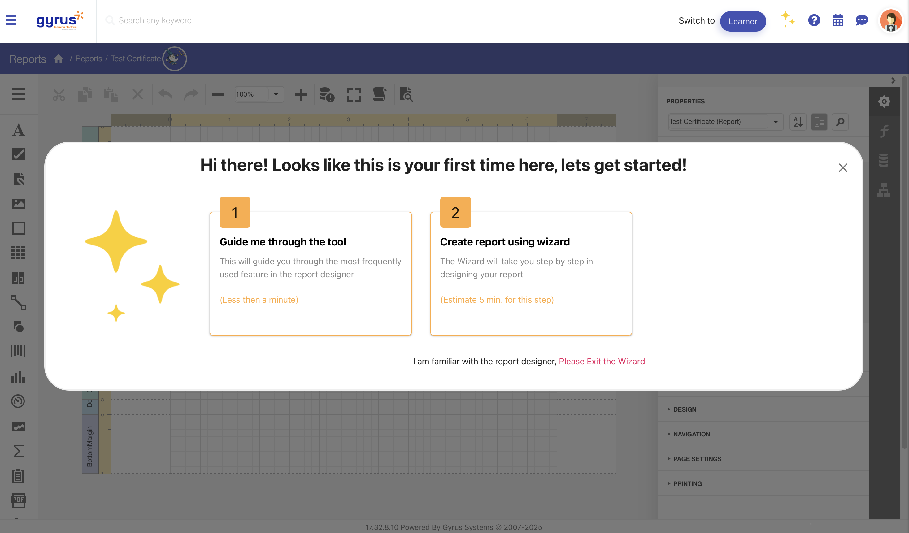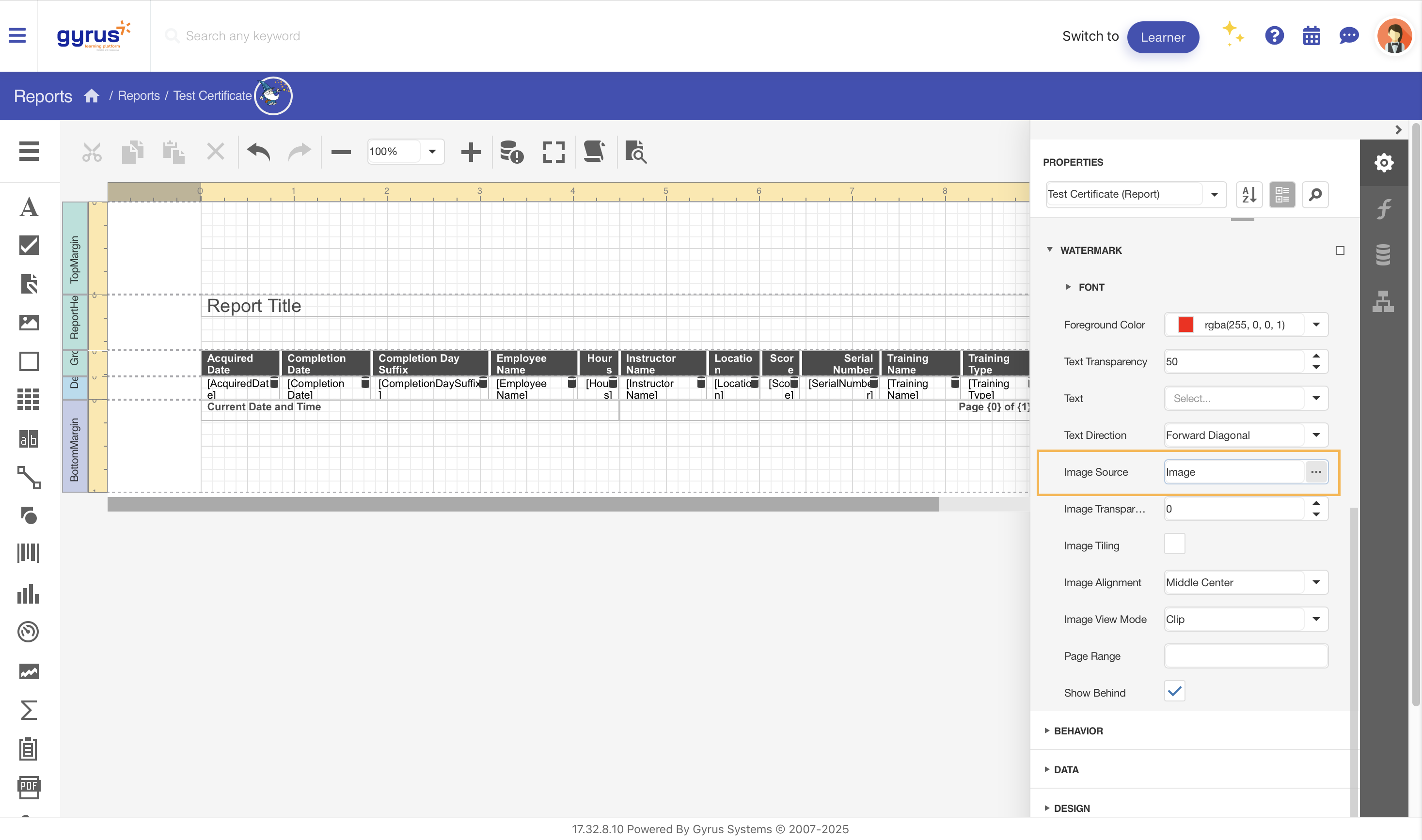 The Report Designer will open, allowing you to design and edit the certificate template.