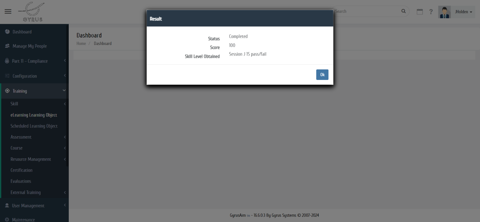 The lesson will be removed from your External Training list at the next lesson will have the Find Training action button to take the next course.