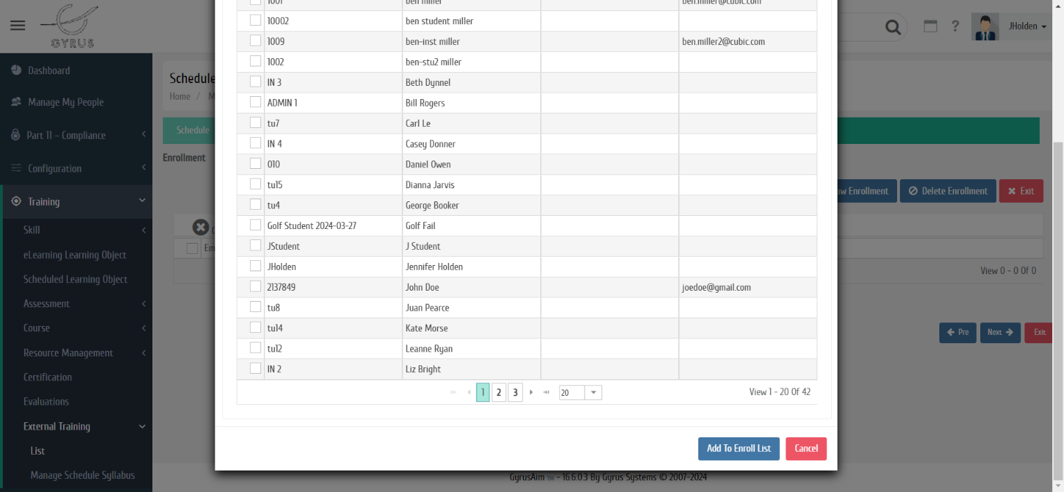 Place a checkmark next to the learners you wish to enroll, then click on Add To Enroll List.