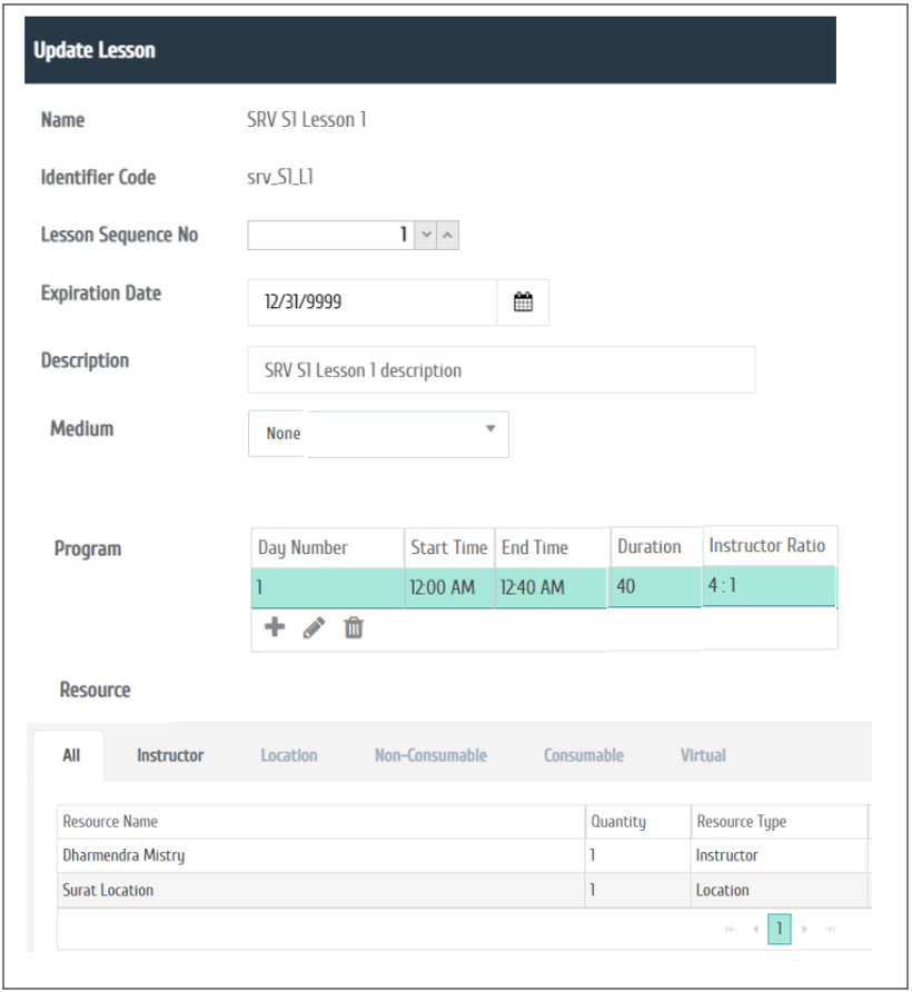a) On the Lesson level users can associate different types of resources including Instructor.