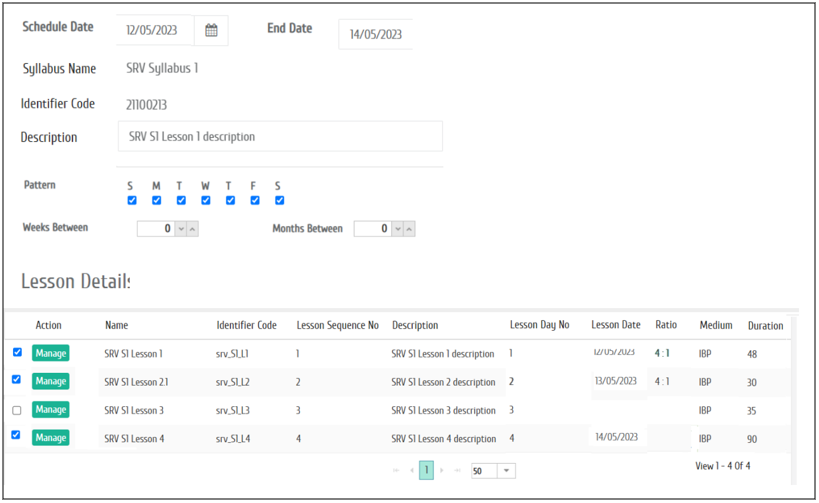 b) The user can Uncheck the unwanted Lessons for this particular Syllabus Schedule.