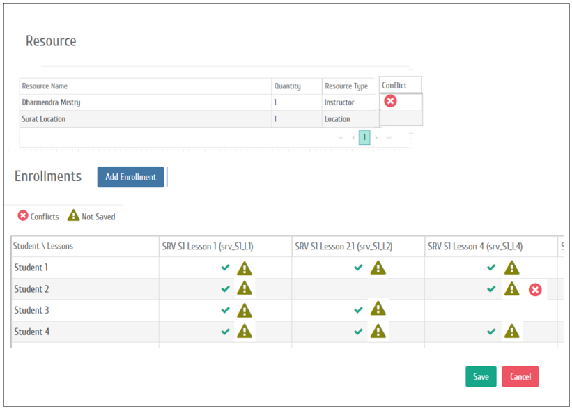 3) A user can cancel existing enrollment of a student from whole Schedule OR one of the Lessons of the Syllabus.