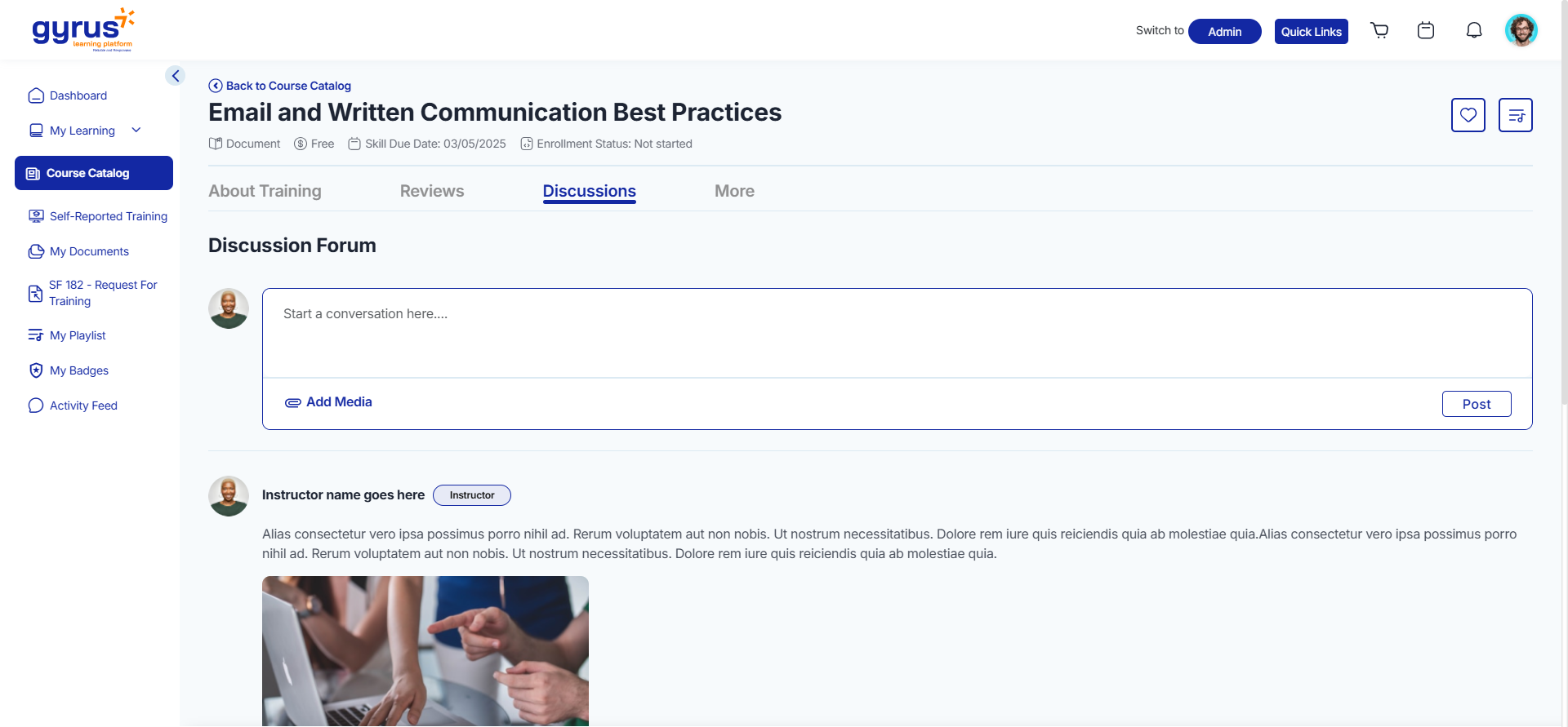 - Learners, instructors, and administrators can participate in course-related discussions.