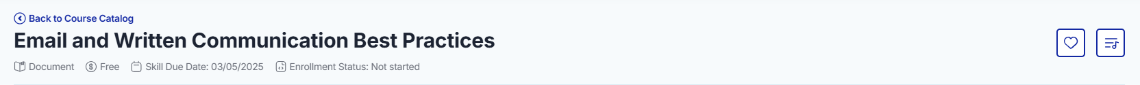The Training Detail Page serves as a one-stop resource for learners to access all necessary information about a course. It can be accessed through the Course Catalog or the Individual Development Plan by selecting View Training Details.