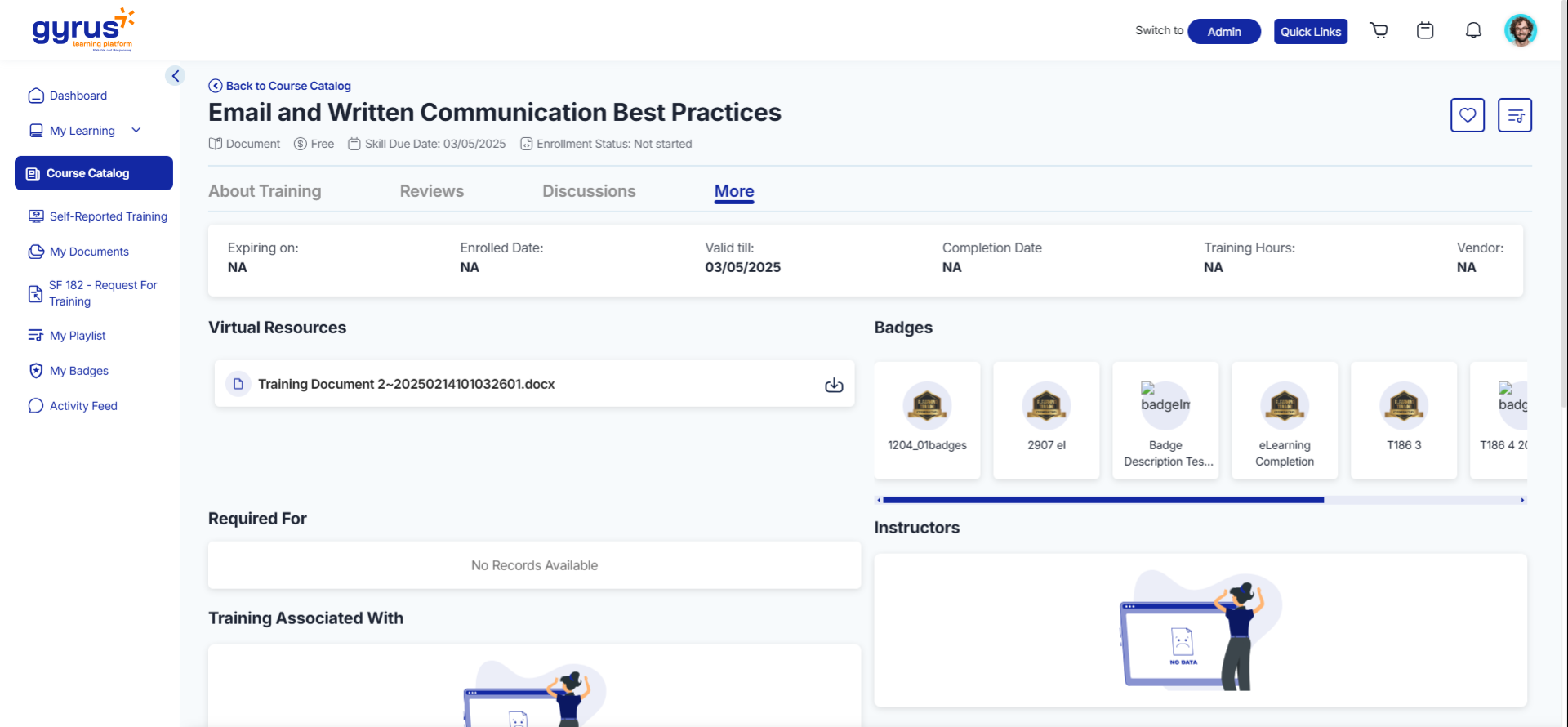 - Valid Till: Training validity period